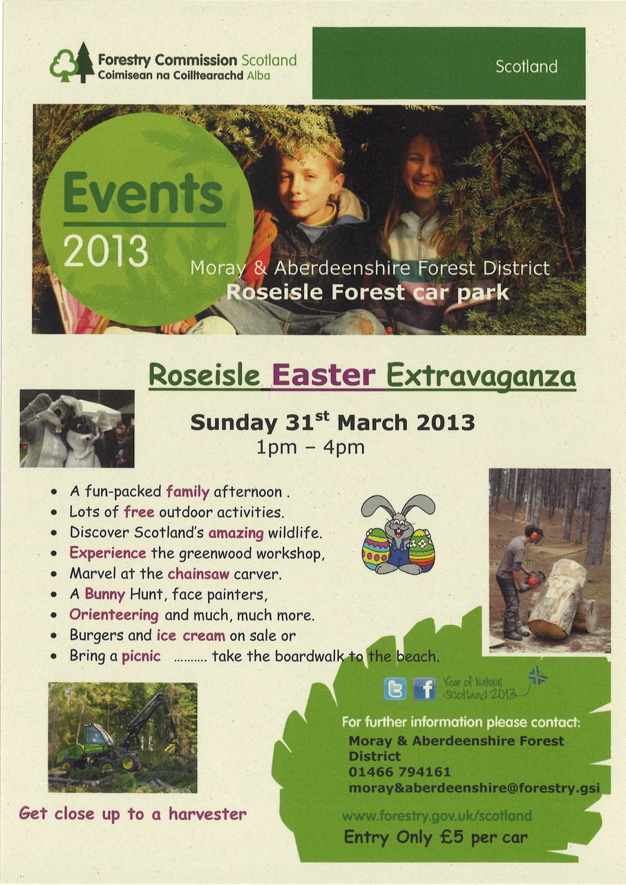 Forestry Commission Scotland are holding an Easter Extravaganza at Roseisle on Easter Sunday. FREE orienteering is one of the activities (white, yellow and orange courses) and there will also be Trail O (thanks to Anne Hickling).