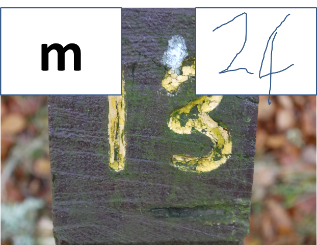 To give you an example of 'punching', the phot-O below shows a small post found at control number 24. Write the control number in the top right hand box. The letter 'm' is part of the secret message.