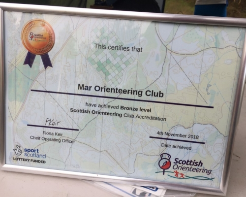 Mar Orienterring Club were presented with our Bronze level Scottish Orientation Club Accreditation at the event at Bogendreip on Sunday 4th November.